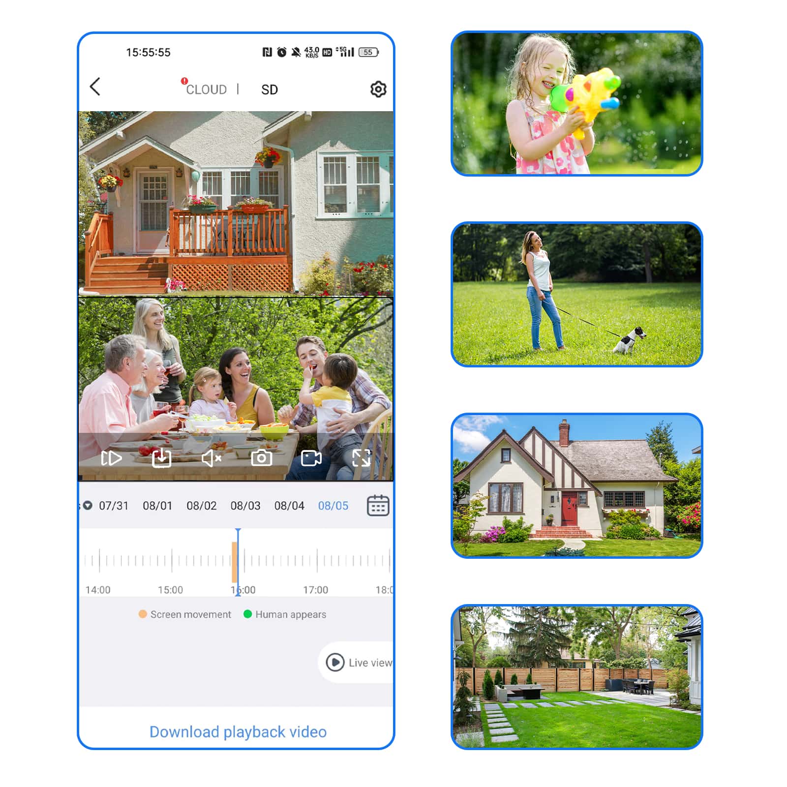 | storage | Support cloud storage, TF card storage (maximum support 256G) Use NVR to store local video |