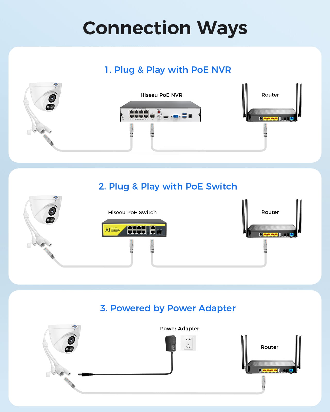 • 【Wide Compatibility 】Compatible with NVR supporting Protocol On Vif, and also work with Hiseeu PoE NVR like YNVR-P-8 or Hiseeu PoE Camera System ( May need to do some modification ip address during first use)