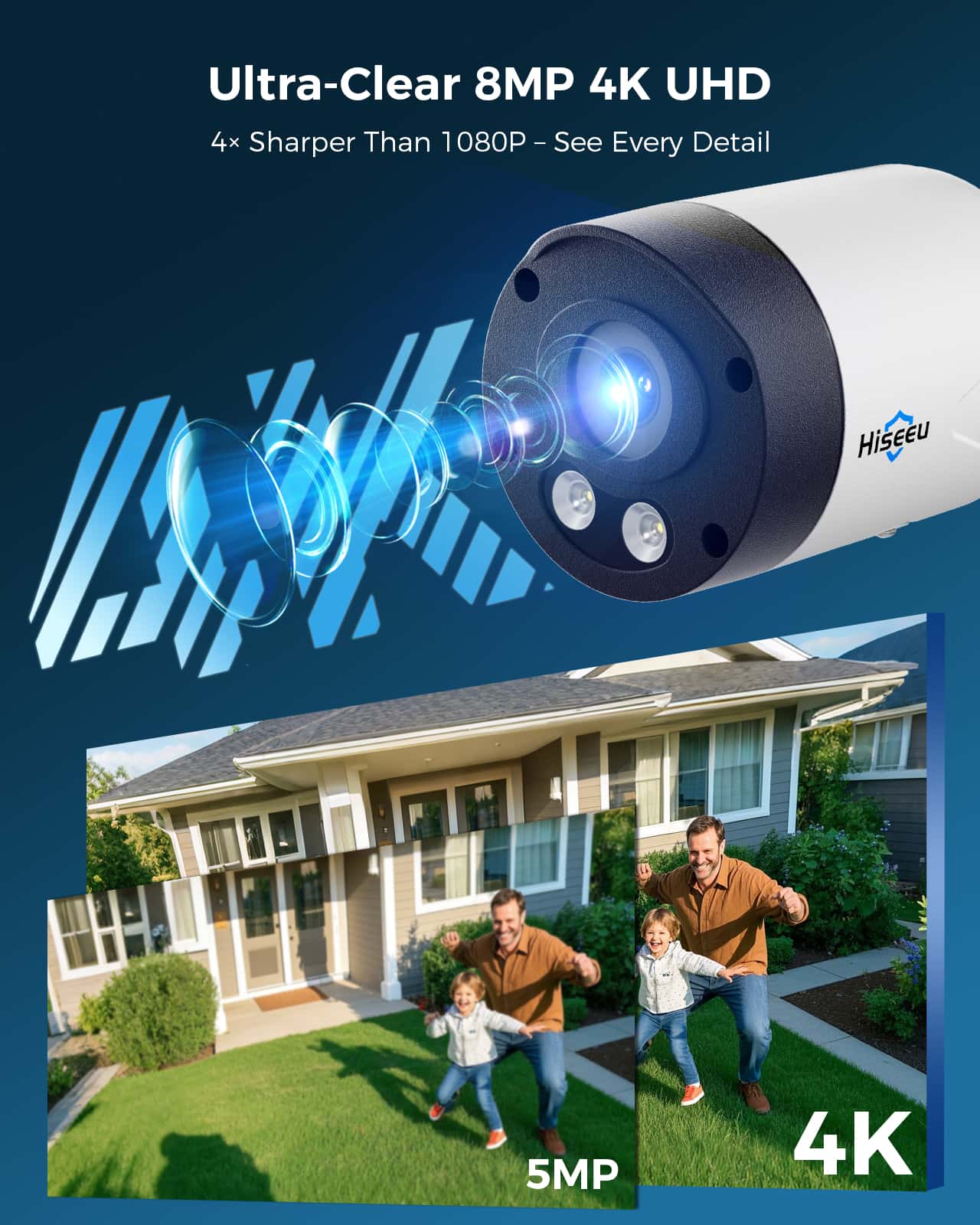 Hiseeu 8MP Wireless Security Camera, 5G/2.4G WiFi 4K Camera, Full Color Night Vision, Motion Detection, Two-Way Audio, IP66 Waterproof,Ideal for Home & Business, Work with WiFi Outdoor System