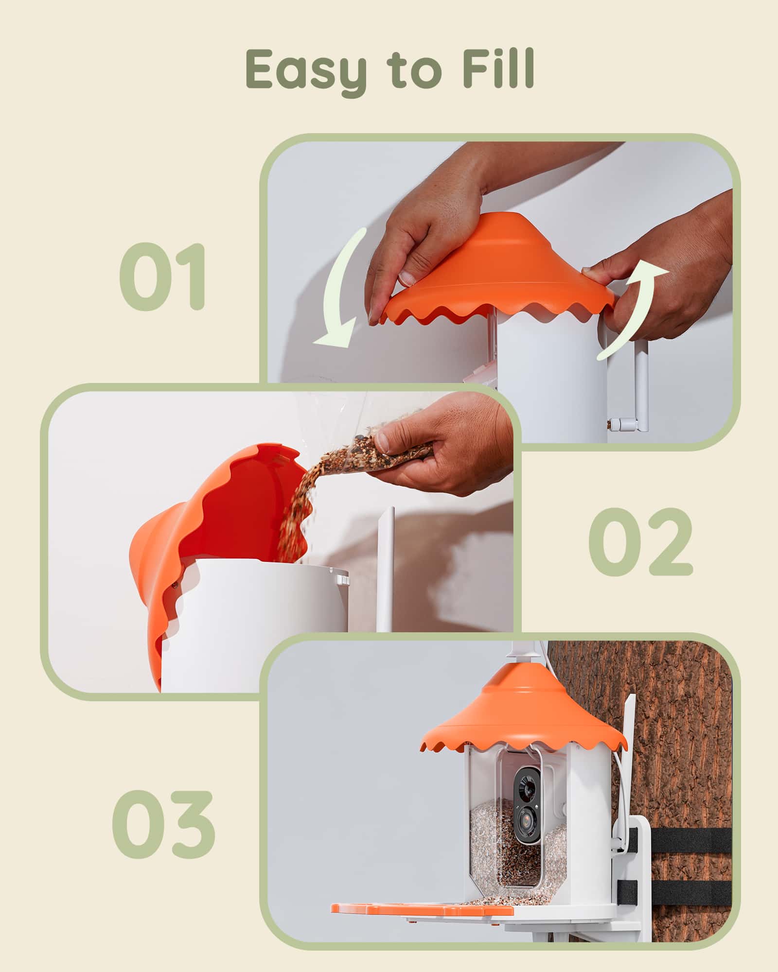 | What's in the box? | 1*Bird feeder with camera, 1*Perch, 1*Mini hummingbird feeder, 2*Fruit Forks, 1*Solar Panel, 1*Power Cord, 1*Manual |